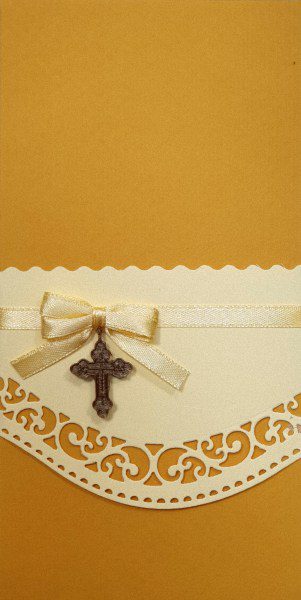 Плик за пари с кръстче за кръщене с цвят горчица