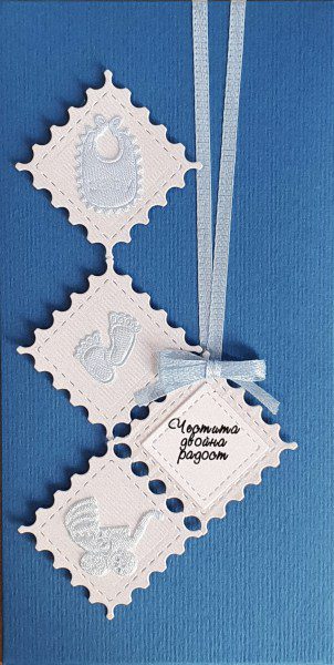 Пликът е с размер 9х18см., от декоративен картон. Декориран е по подходящ начин.