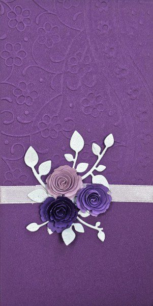 Сватбен плик за пари в лилаво и лилава декорация.