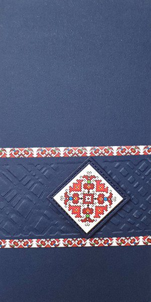 Сватбен плик за пари в син цвят и шевица за декорация.