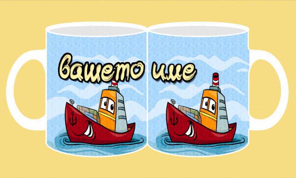 Фоточаша с конкретно детско име от двете страни на чашата с дизайн този от изображението пред вас.