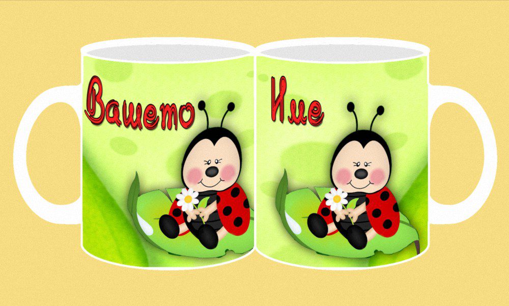 Фоточаша с конкретно детско име от двете страни на чашата с дизайн този от изображението пред вас.