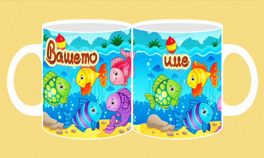 Фоточаша с конкретно детско име от двете страни на чашата с дизайн този от изображението пред вас.
