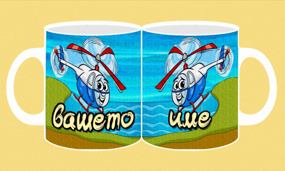 Фоточаша с конкретно детско име от двете страни на чашата с дизайн този от изображението пред вас.