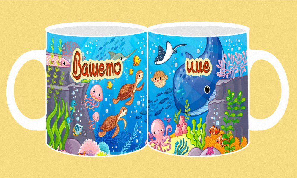 Фоточаша с конкретно детско име от двете страни на чашата с дизайн този от изображението пред вас.