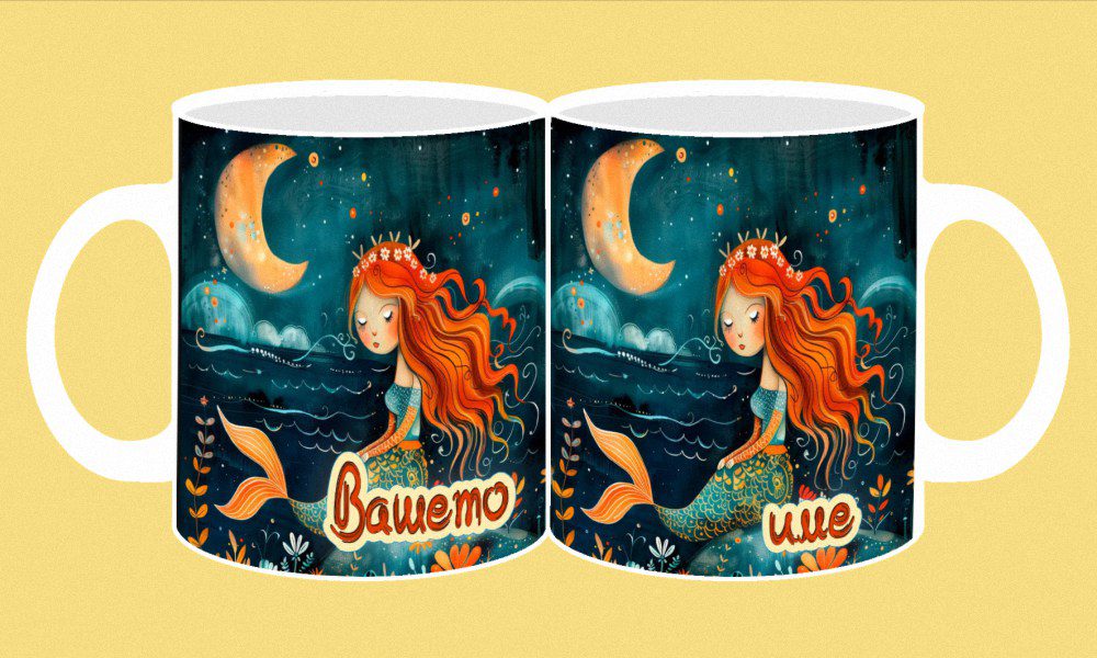 Фоточаша с конкретно детско име от двете страни на чашата с дизайн този от изображението пред вас.