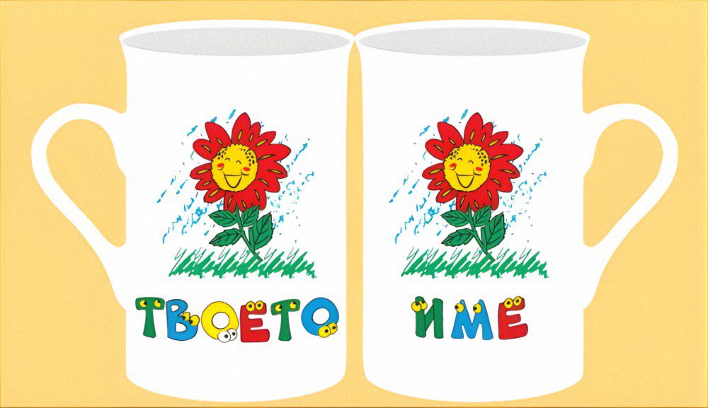 Чаша с женско име с картинка, от двете страни.