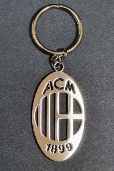 Ключодържател с логото на Милан. Лазерно е изрязан и полиран от легирана стомана.