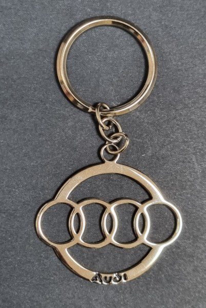 Ключодържател с емблемата на Ауди. Лазерно е изрязан и полиран от легирана стомана.