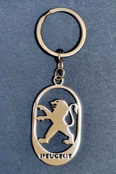 Ключодържател с емблемата на Пежо. Лазерно е изрязан и полиран от легирана стомана.